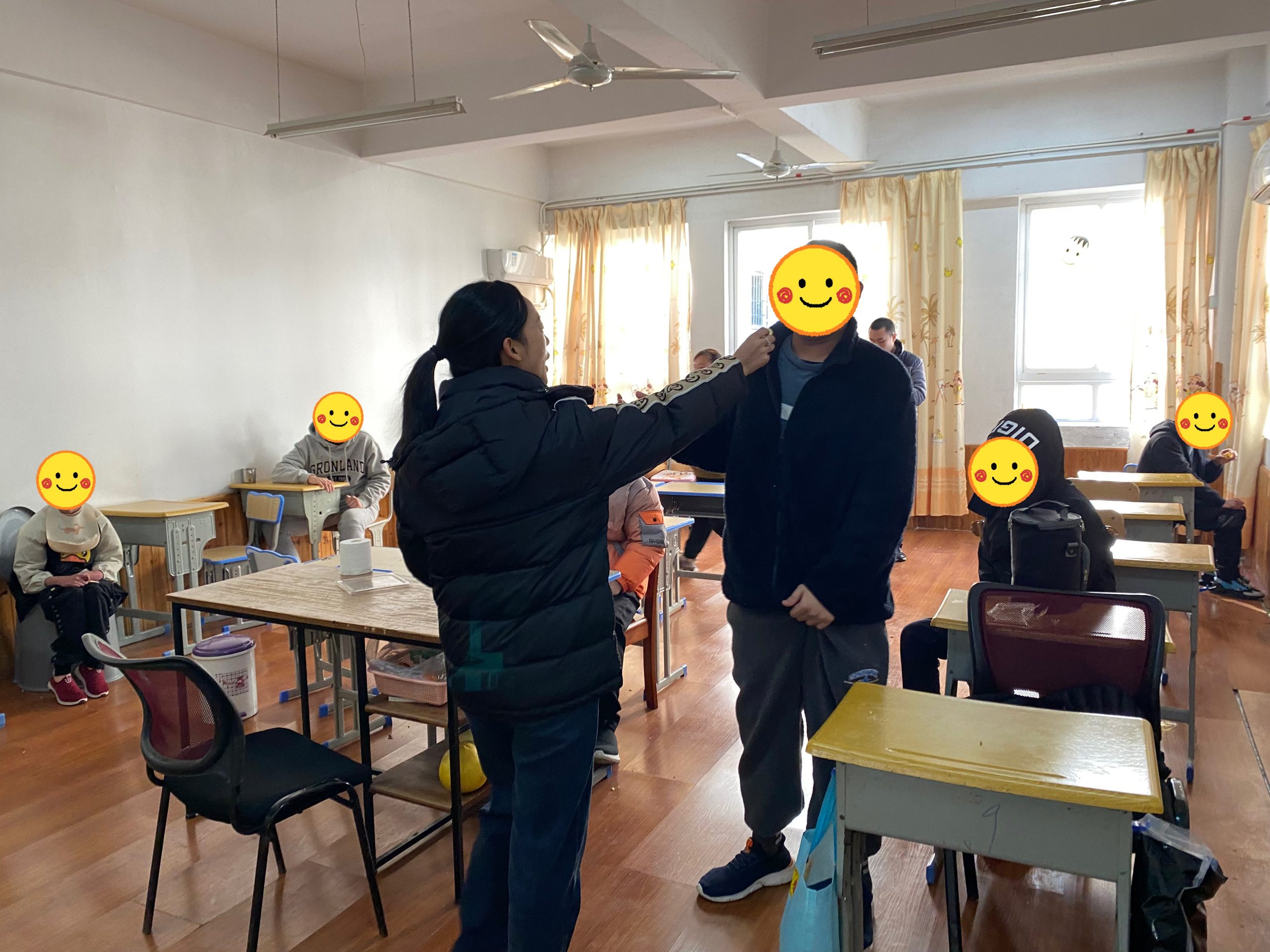奉化啟航愛心園成立于2016年,至今已走過9個年頭,陸續收留了近50名患有智力障礙、唐氏綜合征、自閉癥的孩子,目前最小的只有6歲。其中十余名孩子是日托或全托,家長會出一部分學費,但更多的孩子是無法負擔任何費用的。有些的確是因為家里困難,有些則是直接被父母遺棄在福利院的門口,還有兩個是院長在路上撿來的。這里的孩子基本沒有生活自理能力,由十幾名教職工全權負責他們的飲食起居、康復訓練。