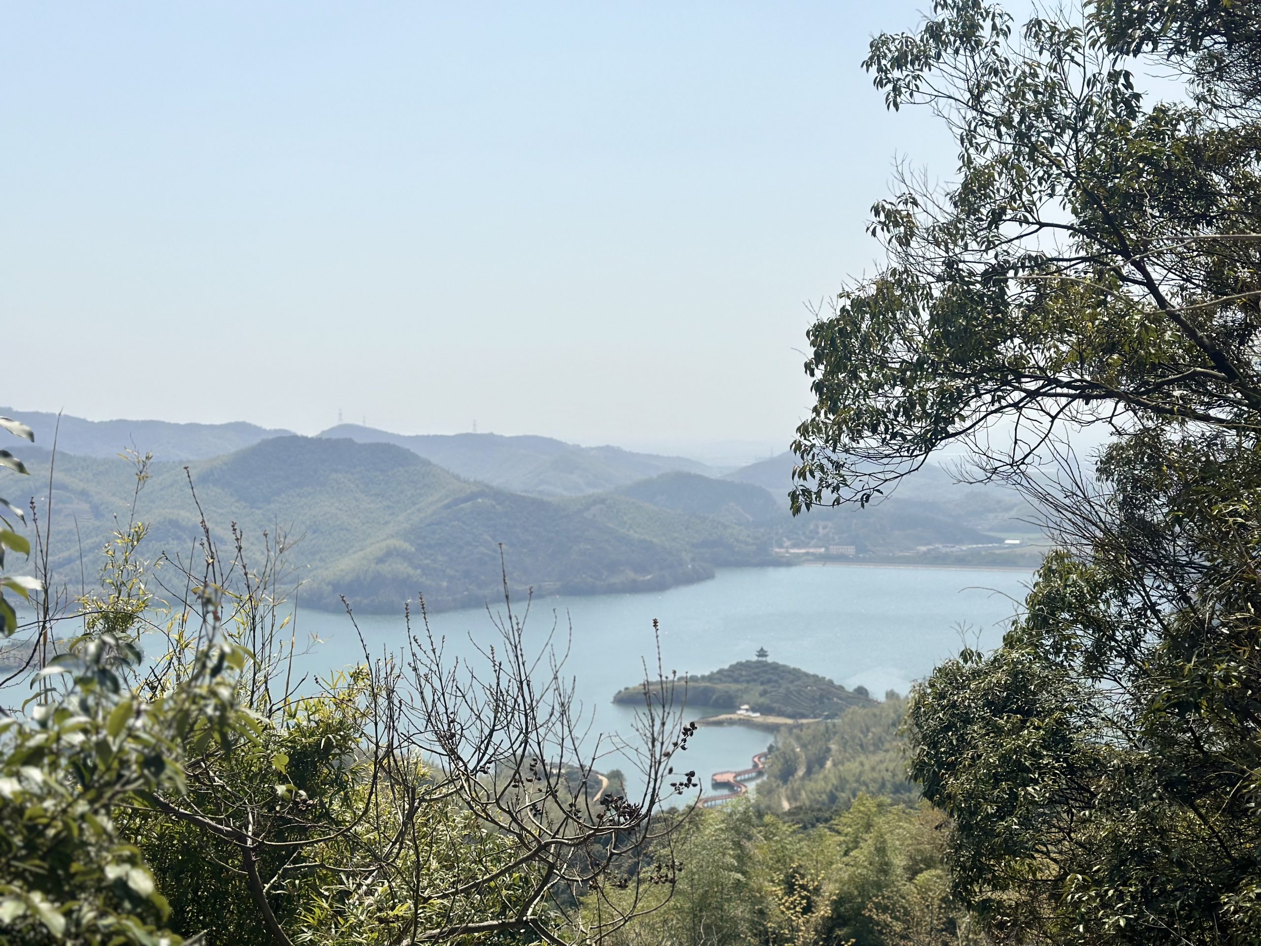 以南聯(lián)村的一條小路為起點,大家排成一路縱隊,緩緩前進。翻過一個小山坡,我們便來到了此次徒步的一段難點區(qū)域——一條直達山頂?shù)氖A。經(jīng)過這幾年戶外徒步的鍛煉,絕大多數(shù)伙伴能跟上教練的登山節(jié)奏,但石階還是有一些坡度,一開始爬得太快,身體總是有些吃不消,中途就需要喘口氣歇歇,漸漸地隊伍就拉開了。大部隊在前方等待,落隊的人也從未萌生退意。負責墊后的小組由經(jīng)驗豐富的徒步教練和體力充沛的事業(yè)部成員組成,有人主動接過體力不支的成員身上的負重,有人一旁鼓勵,有人默默陪伴,直到可以重新出發(fā)。一路上雖然艱難,但坐在石階上回頭看向身后的美景,群山與湖水,也默默治愈著疲憊的身心。
