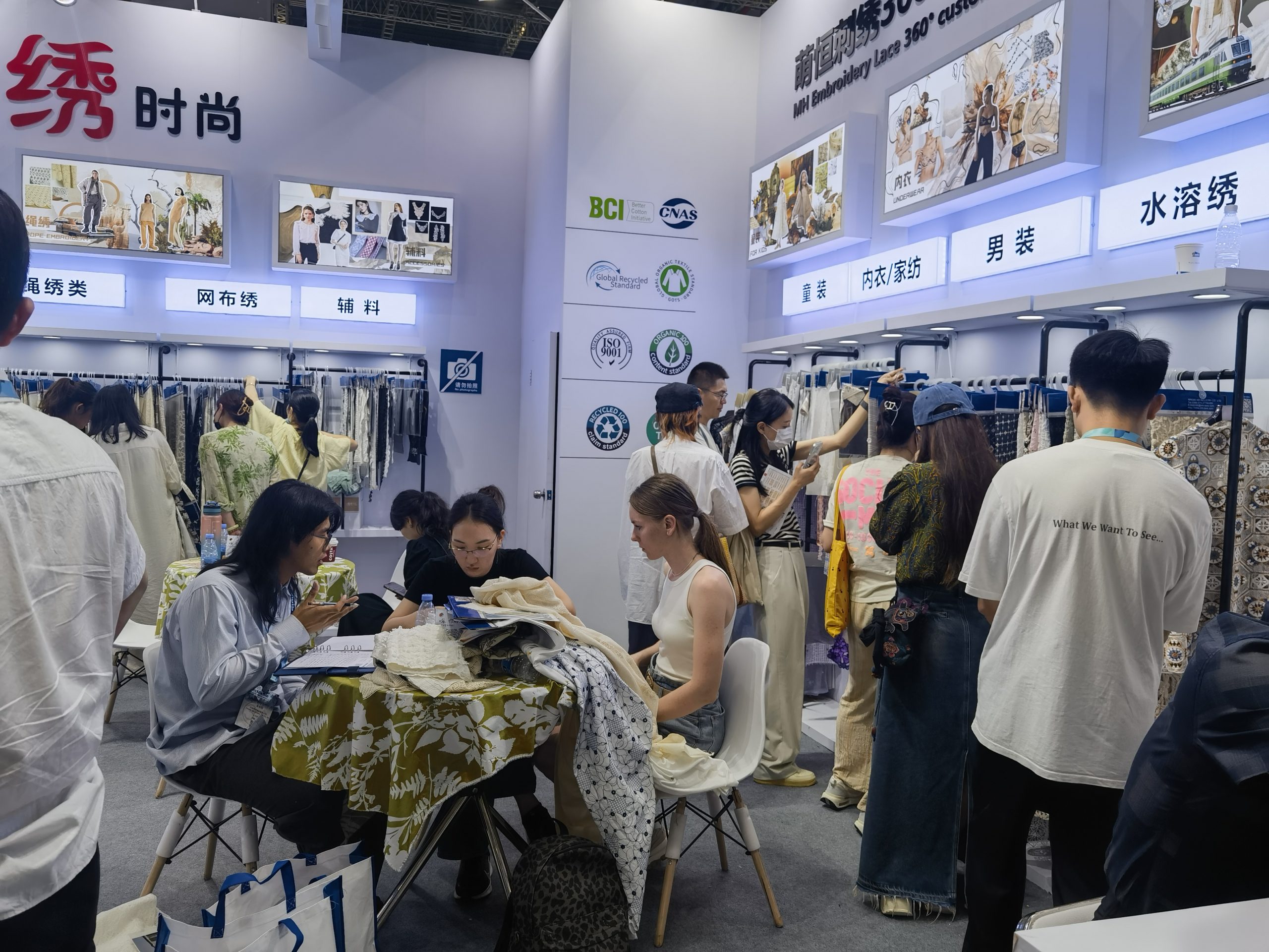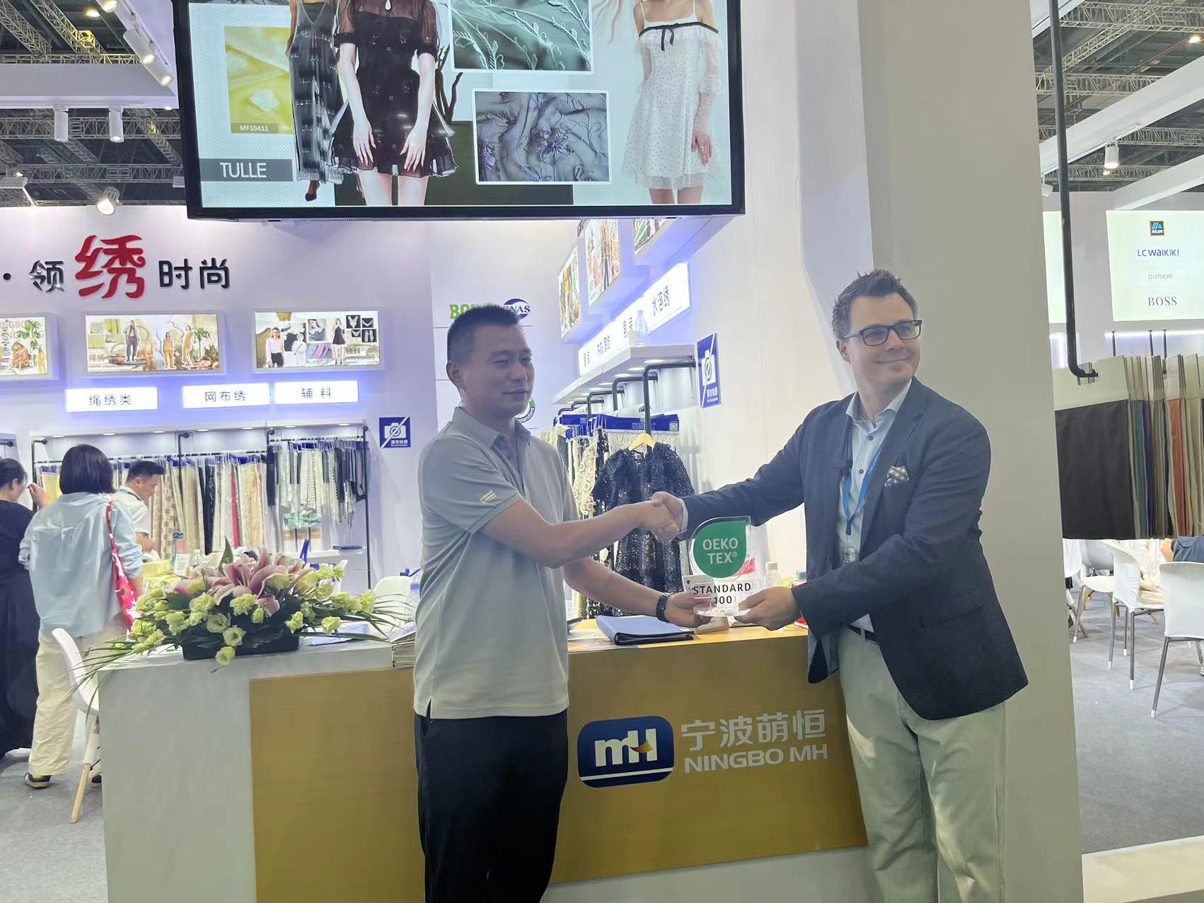 8月27日,為期三天的2024中國國際紡織面料及輔料(秋冬)博覽會在上海開幕,萌恒花邊事業部前往參展。在此次展會上,我們展出融合傳統與現代元素的股繩繡、水溶繡、網布繡等多樣化產品種類,還展示了男士時裝、內衣、童裝等特色刺繡作品。 展會現場,公司展位吸引眾多國內外客商駐足,工作人員以扎實的專業知識和豐富經驗,為參展客商進行詳細而耐心的講解,彰顯了公司團隊專業素養與服務水平,為客戶留下深刻印象,增強了客戶對我們品牌的信任與認可。參展期間,瑞士OEKO-TEX公司相關負責人還蒞臨現場,為萌恒親自授牌,進一步認證了我們產品的綠色、環保、健康、安全。 面對全球商業格局的種種機遇與挑戰,我們將繼續加大產品研發的力度,推動產品多樣化,致力于為全球客戶提供高質量的產品和服務。