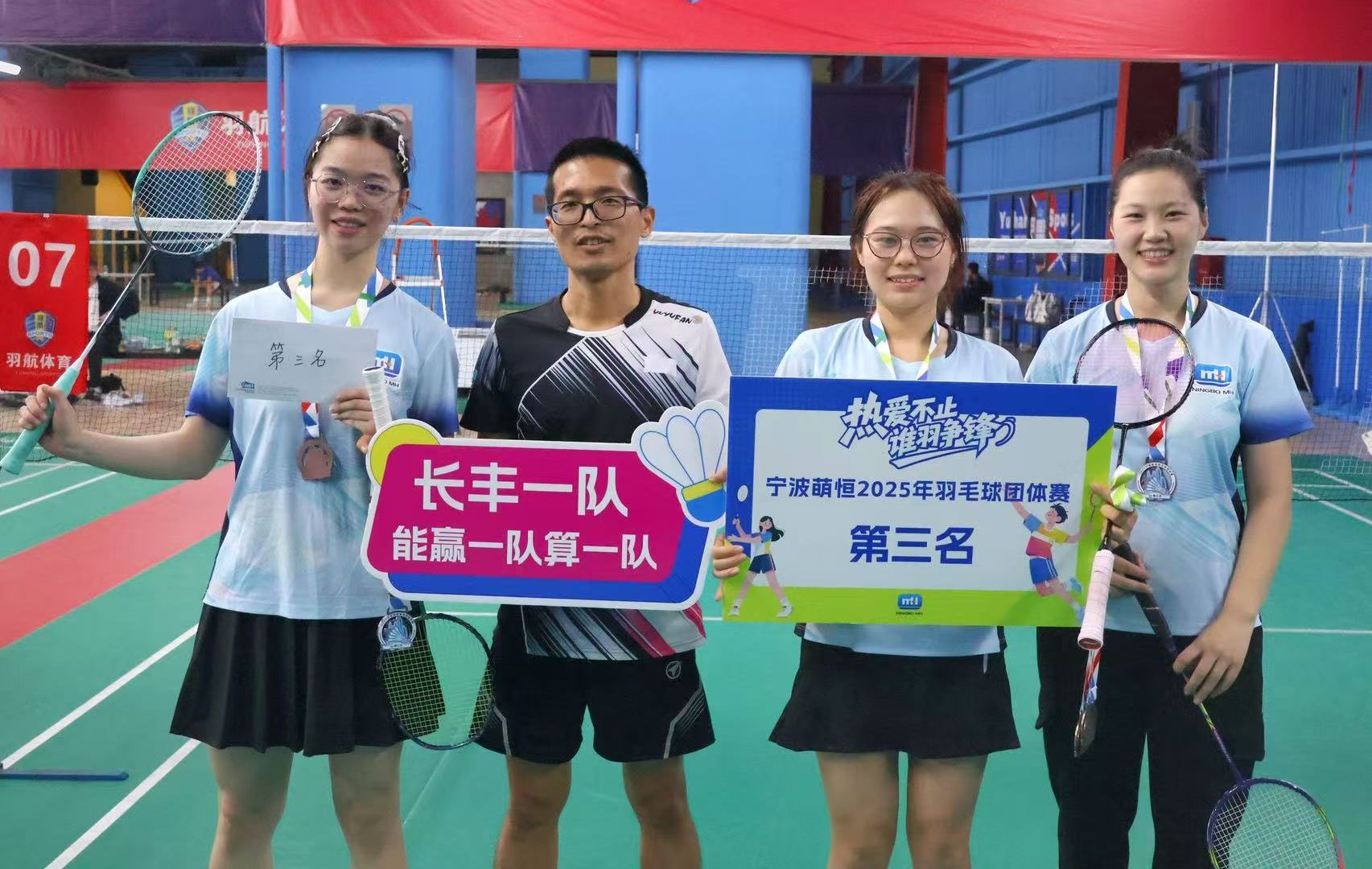 當球拍劃破賽場上空,羽球在場館內劃出白色軌跡,伴隨著清脆的擊球聲和場周的喝彩聲,奏響了屬于團隊與友誼的樂章。11月15日下午,2025萌恒羽毛球友誼賽在潘火體育公園熱力開戰。 中午時分,來自長豐片區、洪塘片區及莊市片區的53名隊員早早在賽場集結,展開熱身訓練。公司領導陳總、徐總也參與其中,同臺競技,為賽事增添不少溫度。隨著大合照的“咔嚓”聲落,比賽正式拉開帷幕。八支斗志昂揚的隊伍,在男單、女單、男雙、女雙及混雙項目中,交織出一幕幕充滿張力與感動的場景。這不僅是技術的切磋、默契的考驗,更是團隊的合作、精神的凝聚。“穩住”“漂亮”“攻他反手”……場邊時不時傳來經驗豐富的老隊員對新伙伴的指導和鼓勵,這是隊友之間最堅實的支持;賽場上,每一次擊掌,每一個眼神的傳遞,都在無聲地訴說著:我們是一個整體。 當賽程來到半決賽,現場戰況達到白熱化的階段。莊市一隊與三隊上演“同門交鋒”,洪塘一隊與長豐一隊狹路相逢。兩邊好戲同時上演,觀眾目不暇接,掌聲不絕于耳。 當決賽的戰鼓擂響,莊市一隊與洪塘一隊聯袂奉上了一場精彩絕倫的巔峰對決。賽場上,雙方隊員全力以赴,多拍回合層出不窮,羽球如流星般穿梭,力量與技巧、耐心與策略在網帶兩側激烈碰撞。反手突擊、網前放短、后場壓制……每一分的背后,是個人能力的展現,更是團隊智慧與默契的結晶。 經過激烈角逐,最終莊市一隊勇奪冠軍,洪塘一隊榮獲亞軍,長豐一隊贏得季軍。賽后的頒獎儀式上,笑容與祝福在隊員之間傳遞。獎牌雖輕,卻承載著沉甸甸的團隊榮譽;而比獎牌更閃亮的是貫穿始終的鼓勵與協作——無論戰況如何,場邊總有伙伴的呼聲;無論資歷深淺,每個人都為團隊的榮譽傾盡全力。 萌恒羽毛球友誼賽已經落下帷幕,但團隊合作的精神仍在延續。愿賽場上的這份鼓勵與默契,化為我們日常工作中并肩前行的力量,因為我們知道,當每個人心手相連,便是最強隊伍。運動不止于比賽,更融于日常,期待下次再會!